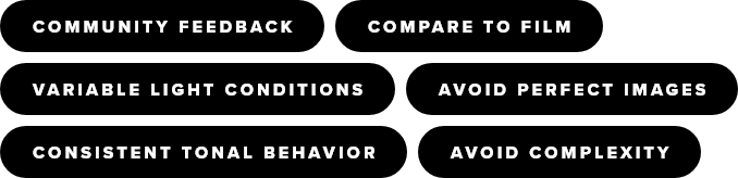 Are you tired of investing in presets that advertise stunning looks, but whose tonality doesn’t seem to work with your camera or lighting? We quickly learned that different lighting conditions require different presets to work, unless you apply the same method that real film processing uses for color: consistent changes to all tonal values. This means it doesn’t matter which preset you apply. The result is always consistent, regardless of lighting conditions, camera, or even skin tone.